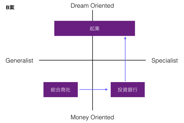 我らが総合商社はMoney Oriented×Generalistだ。そこで私が考えたのは次の2案。